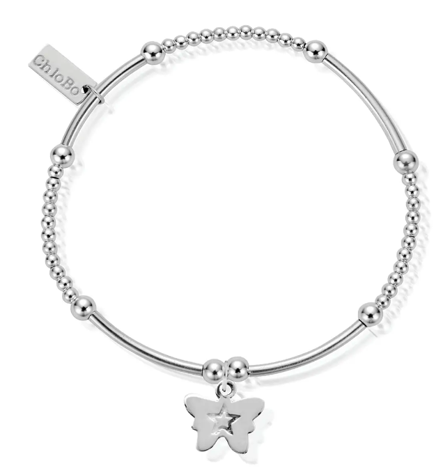 Handmade with 925 sterling silver mini noodles, 2.5mm and 4mm beads this petite piece features the butterfly charm which represents love & new beginnings.