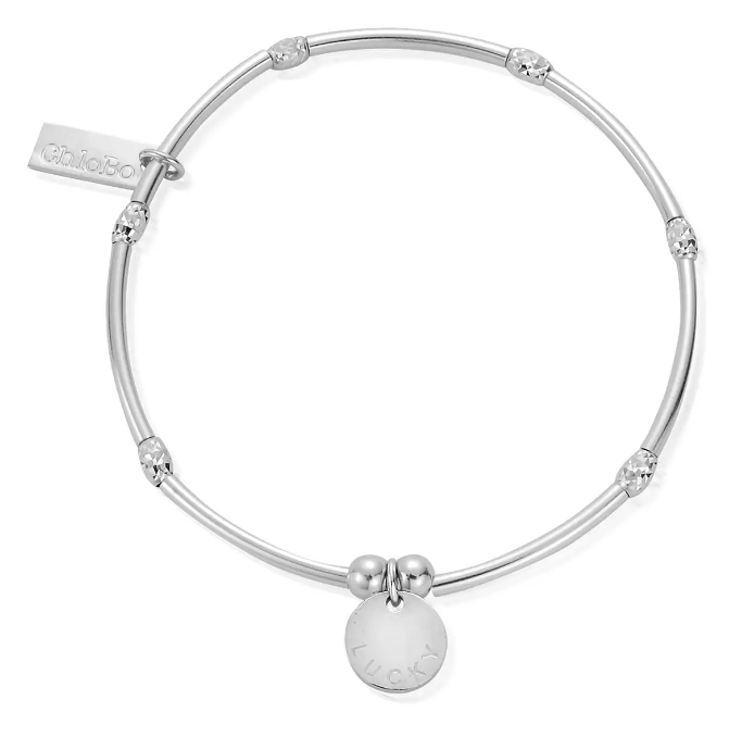 Delicately engraved with 'Lucky', this solid 925 sterling silver disc bracelet is a core piece if you love a sentimental charm. The sparkle rice and noodle combination will stand out on its own and add real sparkle to your ChloBo stack.