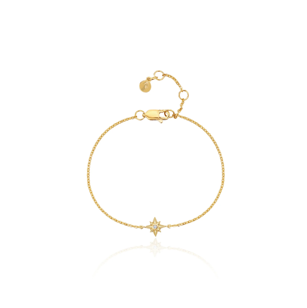 This delicate bracelet features a twinkling cubic zirconia charm on a gold chain with an adjustable fastening.