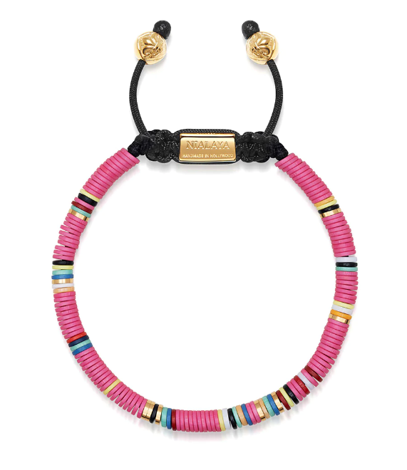 Nialaya Men's Beaded Bracelet with Pink and Gold Disc Beads