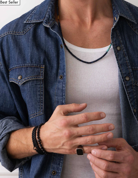 Nialaya Men's Black Wrap Around Leather Bracelet