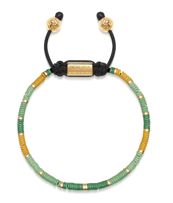 Nialaya Men's Beaded Bracelet with Green Mini Disc Beads