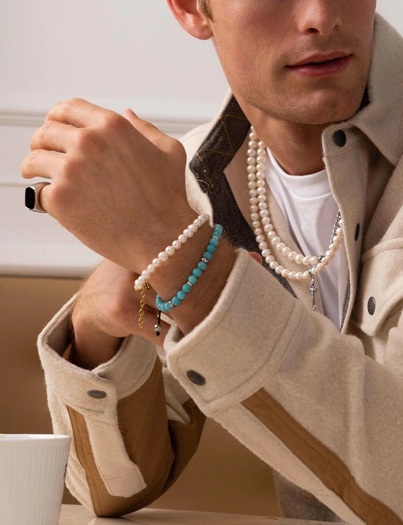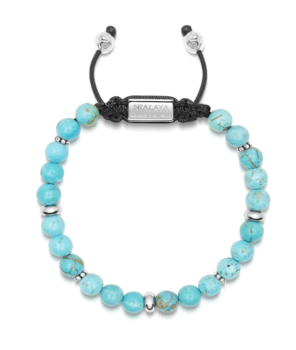 Nialaya Men's Beaded Bracelet with Turquoise and Silver