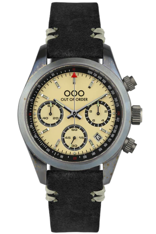OUT OF ORDER WATCH CREAM SPORTY CRONOGRAFO - BLACK LEATHER STRAP