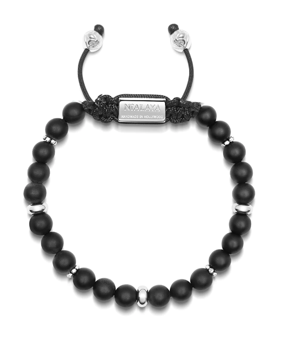 Nialaya Beaded Bracelet with Matte Onyx and Silver