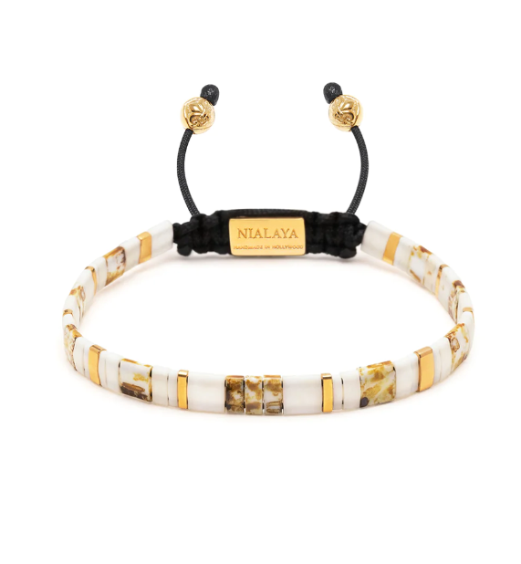 Nialaya Bracelet with White and Gold Miyuki Tila Beads