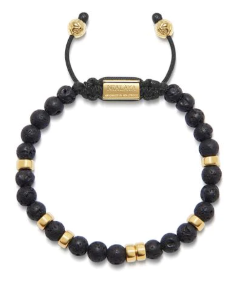 Nialaya MEN'S BEADED BRACELET WITH LAVA STONE AND GOLD