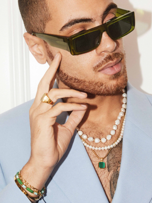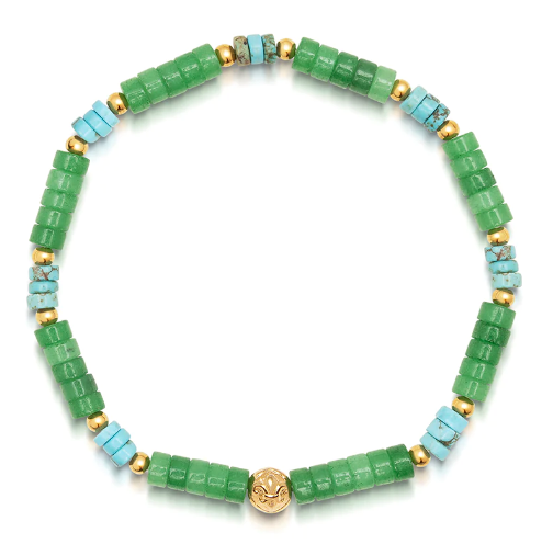 Nialaya Men's Wristband with Green Aventurine and Turquoise Heishi Beads